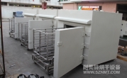 (1)烘干工作時(shí)間12小時(shí),烘干溫度120℃可調(diào)。預(yù)計(jì)產(chǎn)能為600Kg/車。產(chǎn)品采用托盤平鋪方式放置。